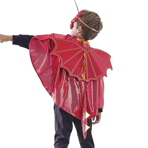Ginger Ray Cape de dragon rouge pour garçons avec écailles, ailes, queue et épines pour anniversaires et fêtes costumées Âge : 3-7 ans
