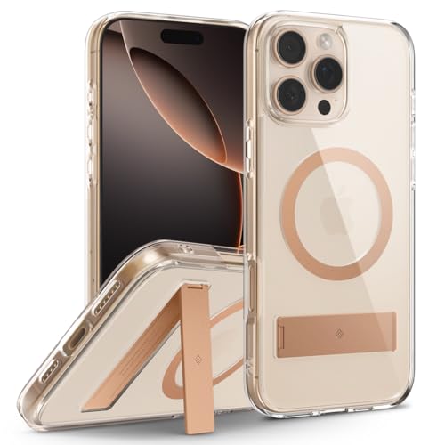 Caseology Capella Mag Kickstand Coque iPhone 16 Pro Max [Béquille intégrée] Protection magnétique Contre Les Chutes de qualité Militaire Motifs de poignée latérale - Clear Sepia Gold