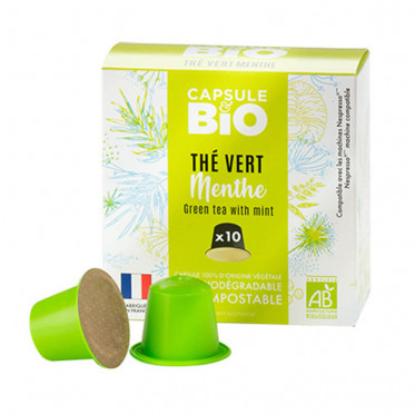 Capsule Nespresso Compatible sans aluminium sans plastique Thé Vert Menthe Bio - 10 capsules