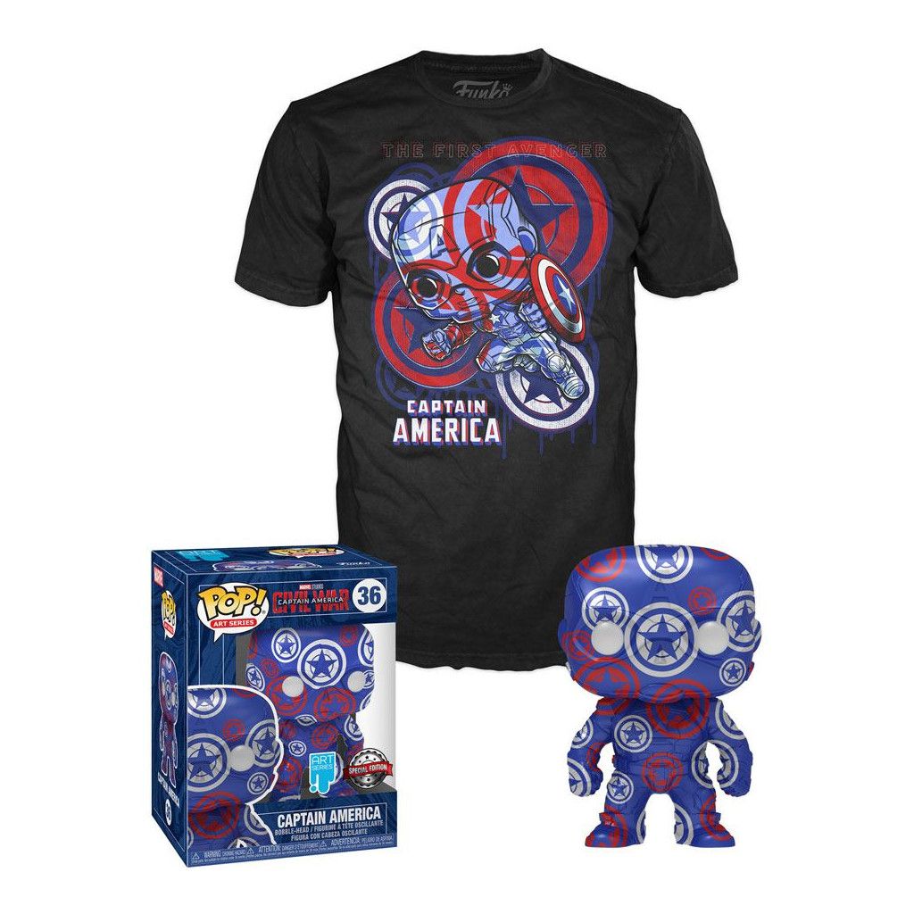 Funko Captain America Marvel Patriotic Age - Captain America (Art Series) - Pop! & T-Shirt Homme Pop! Standard M