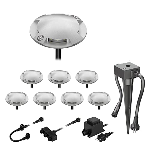 ledscom.de Lampe LED de sol en saillie Bunda, 4 flammes, avec capteur crépusculaire pour l'extérieur, carrossable, blanc chaud, 8 pièces