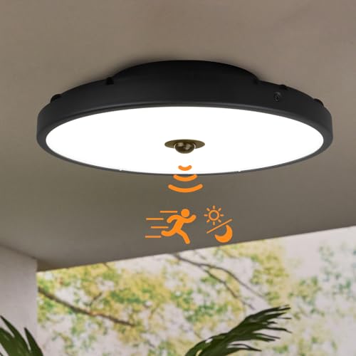 KZT Plafonnier LED avec Détecteur de Mouvement IP65 Imperméable lampe Salle de Bain 18W Lampes de Plafond avec capteur crépusculaire Aluminium Luminaires extérieur rond Plafonnier de Lampe Pour Porche