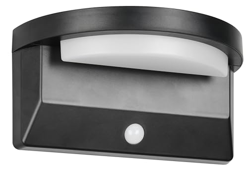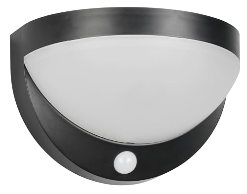 BRILONER - Lampe d'extérieur à LED, applique murale d'extérieur avec détecteur de mouvement et capteur crépusculaire, 12 Watt, 1.150 Flux de lumieres, 4.000 Kelvin, Blanc/Noir, Rond, Ø 17cm