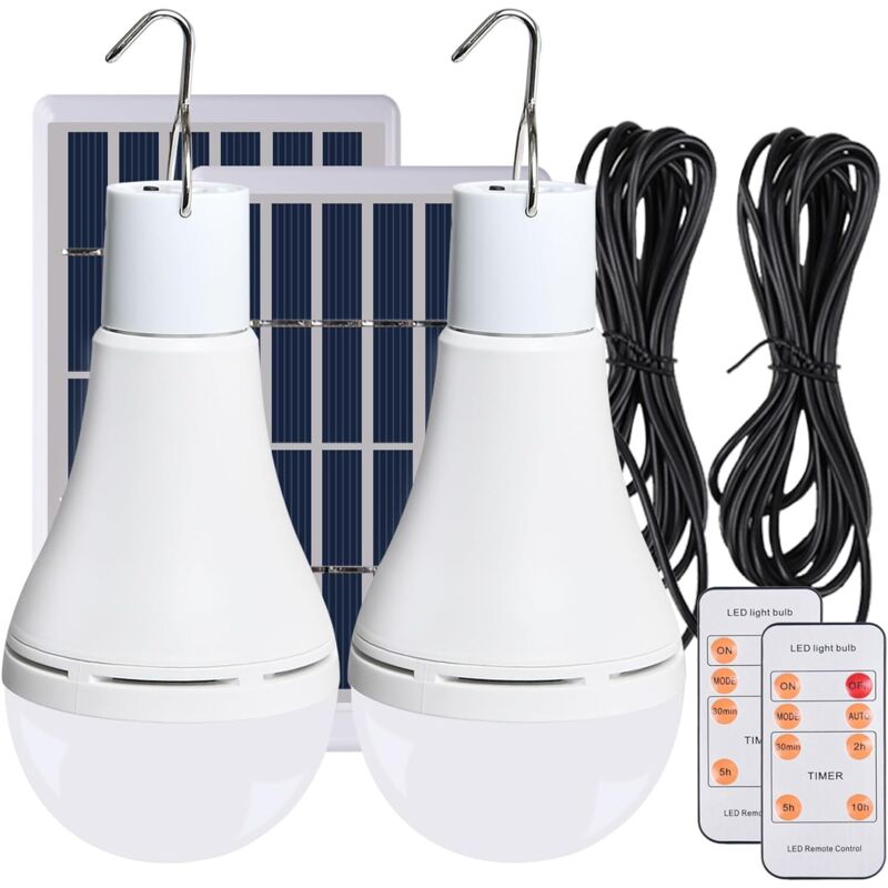 Ampoule Solaire Exterieur Interieur 2PCS Lampe Suspendue avec Panneau Solaire, Capteur Crépusculaire, Solaire/USB Rechargeable Portable Lampe Solaire
