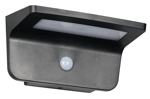 Reality Leuchten LED Applique murale d’extérieur MORO R24706132, Plastique Noir mat, 8 Watt LED, Hybride Solaire/Batterie, Capteur crépusculaire, Capteur de mouvement