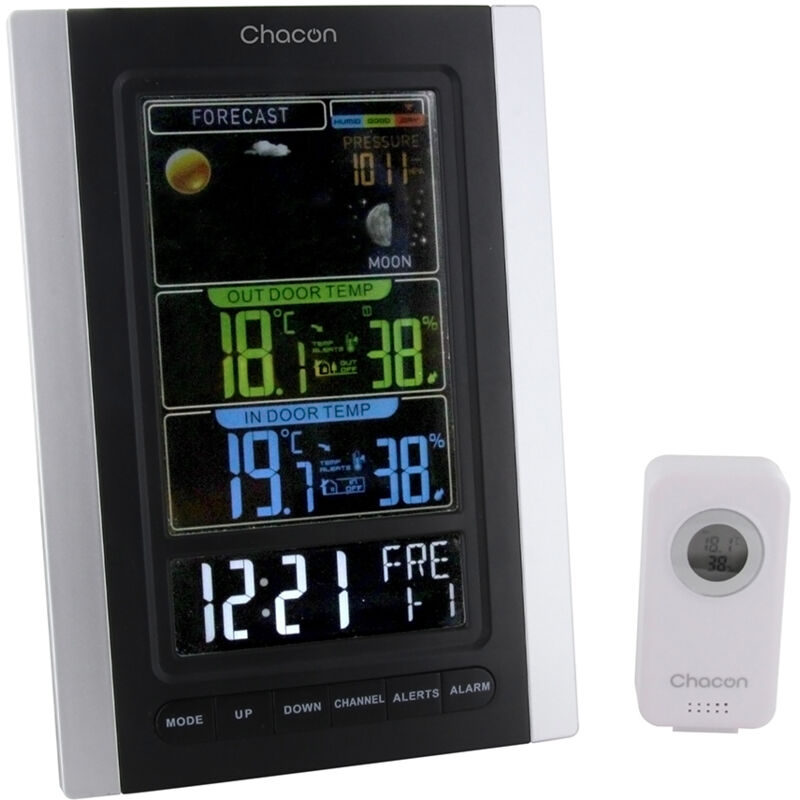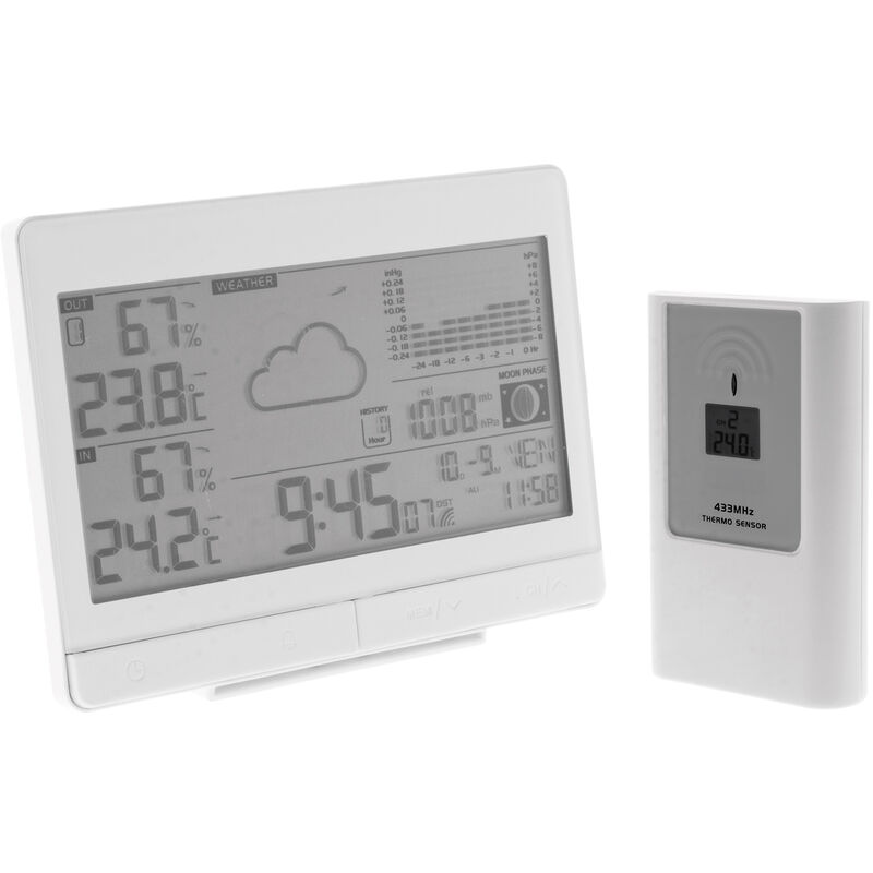 Station météo sans Fil avec capteur extérieur – avec Heure, Date, température, humidité, baromètre, Alarme, Affichage des Phases de Lune, thermomètre
