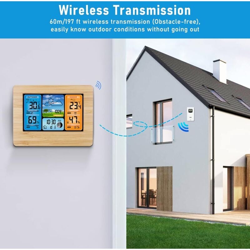 Station météo sans Fil Horloge de météo colorée numérique avec capteur extérieur Thermomètre extérieur intérieur avec Date Température Humidité