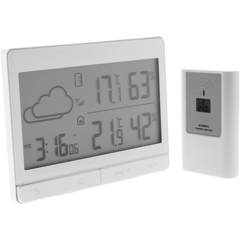 TFA Dostmann Station météo numérique sans Fil Clear, 35.1168.02, capteur extérieur, température et humidité int./ext., prévisions météo avec Pression atmosphérique et Symboles, Petit, Blanc