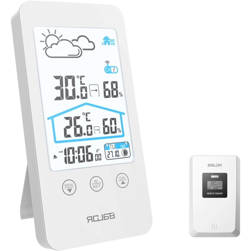 Station Météo sans Fil, Station Météo Radio avec Capteur Extérieur, Station Météo Radio Multifonction avec Humidité, Baromètre, Hygromètre,