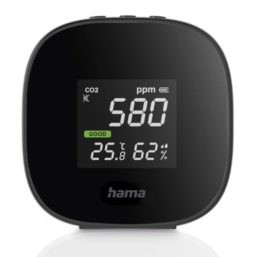 Hama Détecteur Qualité de l’Air Intérieur Safe (Détecteur 3 en 1, Détecteur de CO², Température ambiante, Humidité de l’air, Compact, Rechargeable Micro-USB) Noir
