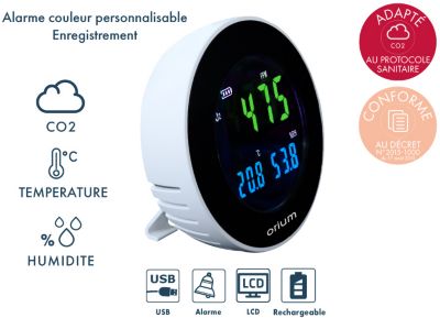 Capteur qualité de l'air ORIUM Mesureur de CO2 & horloge Quaelis 18