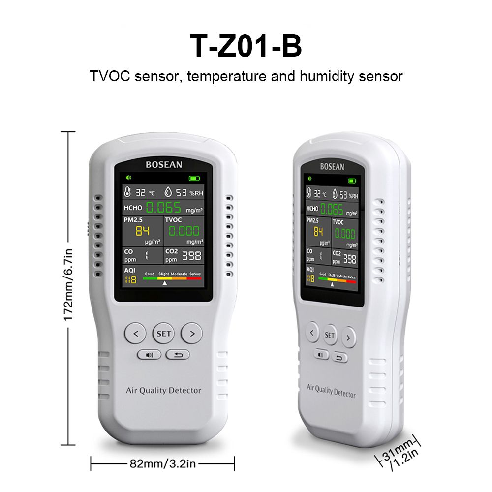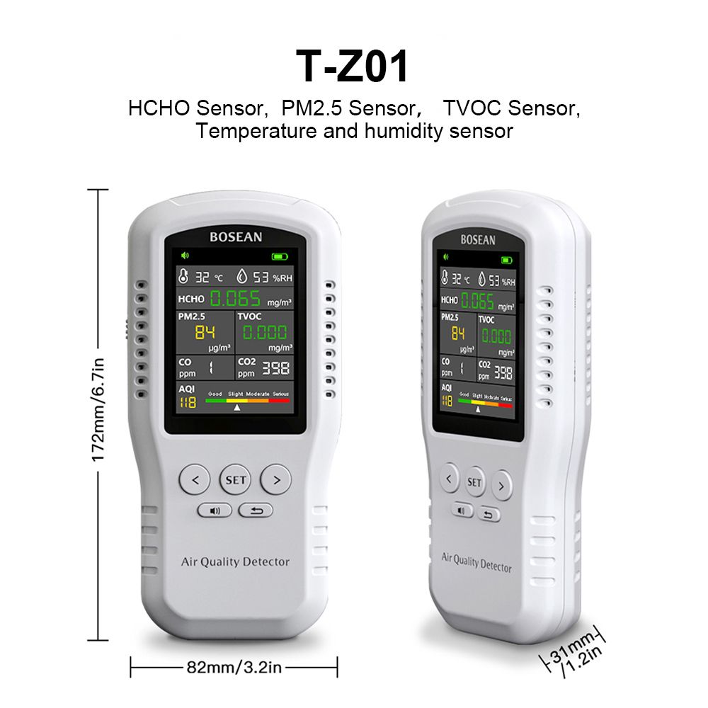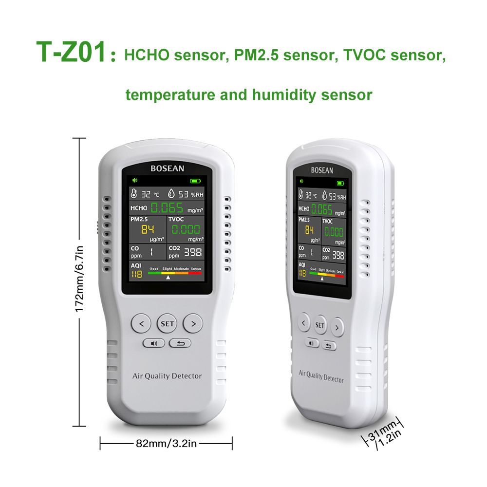 Bosean moniteur de qualité de l'air CO2 CO PM2.5 HCHO TVOC moniteur de température et d'humidité détecteur de qualité de l'air domestique avec capteurs réels