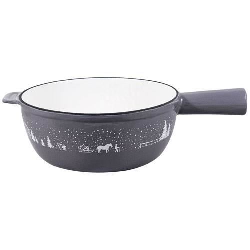 Poêlon à fondue - TABLE ET COOK - 6 personnes - Ø24cm - En fonte émaillée - Frise hiver - Gris taupe