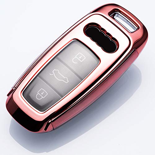 YJADHU TPU Car Key Cover Holder Skin Key Cover Case Protector, Fit pour Audi A3 2021 A6L A7 A8 Q8 E-tron C8 D5 2019 2020, Rose