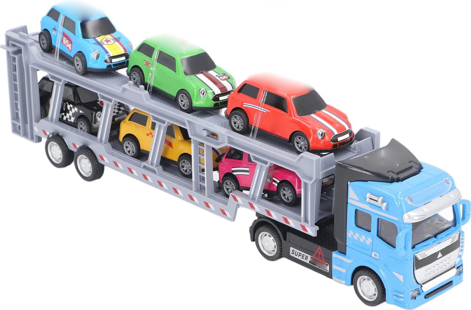 Transport Car Carrier Truck Toy with 6 Small Car for Kids Pull Back Detachable Interactive Toy Carrier Truck Blue