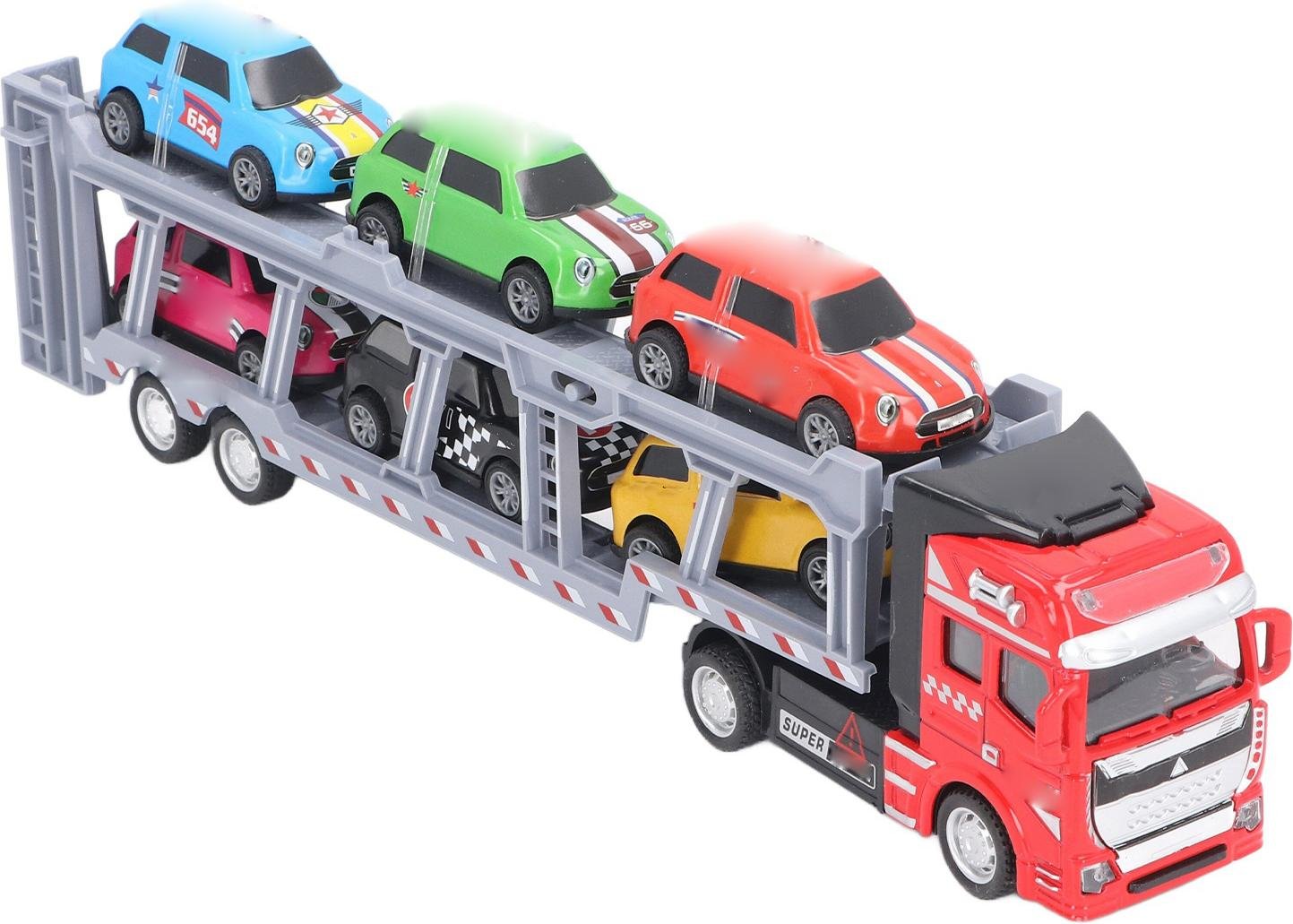 Transport Car Carrier Truck Toy with 6 Small Car for Kids Pull Back Detachable Interactive Toy Carrier Truck Red