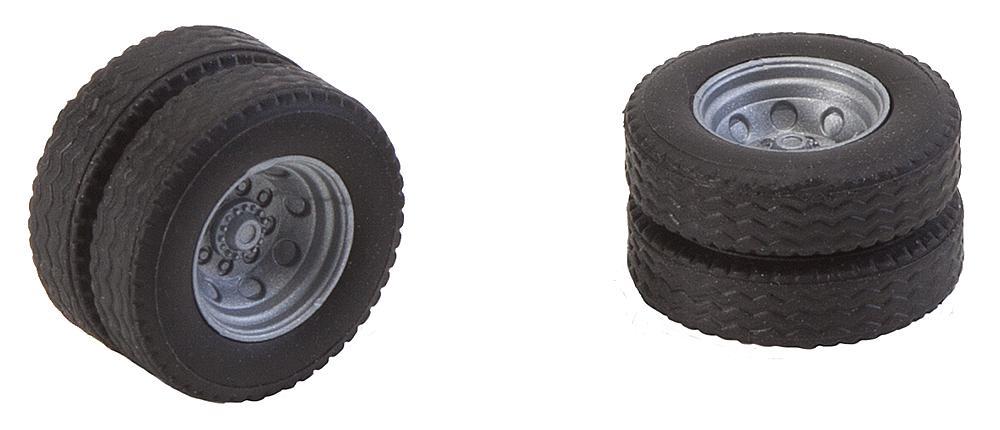 Faller Car System 163104 - H0 2 Roues Complètes (Pneus Jumeaux) Pneus + Jantes