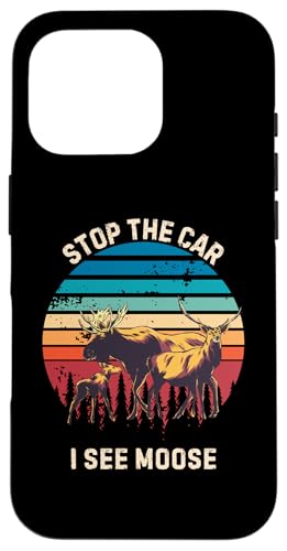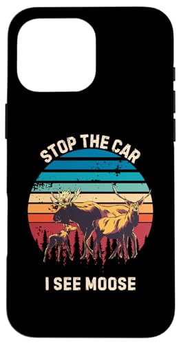 Vintage Stop The Car I See Moose Animals Amoureux Coque pour iPhone 16 Pro Max