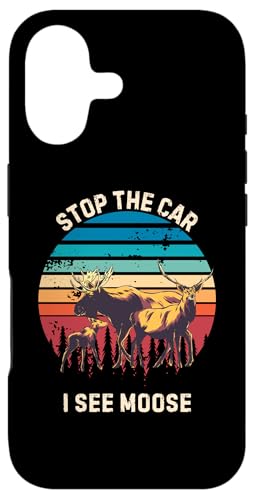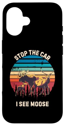 Vintage Stop The Car I See Moose Animals Amoureux Coque pour iPhone 16