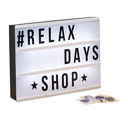 Relaxdays Light Box, coffret lumineux avec 85 caractères, lettres, panneau lumineux LED, HxLxP : 22 x 30 x 4,3 cm, blanc/noir