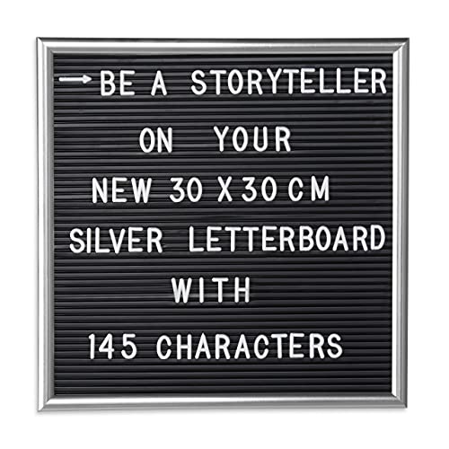 Relaxdays Tableau à lettres, 145 signes, chiffres, caractères spéciaux, 30x30 cm, panneau à rainures, plastique, argenté
