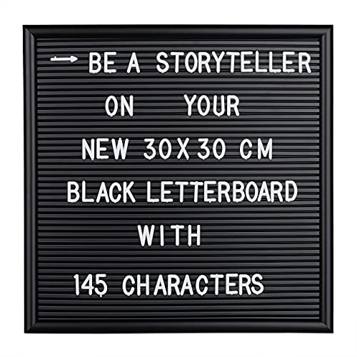 Relaxdays Tableau à Lettres, 145 Signes, Chiffres, caractères spéciaux, 30 x 30 cm, Panneau à rainures, Plastique, Noir