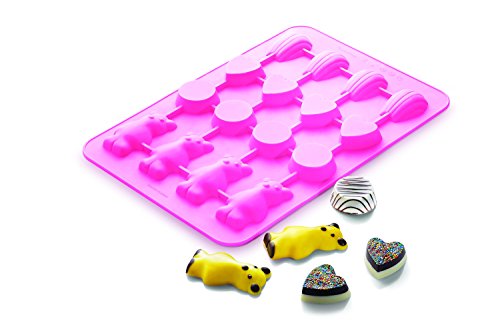 Silicone Zone Sz 404612 Pâtisserie et joie de gâteau forme de 16 caractères, Silicone, Rose, 27,6 x 18,8 x 1,4 cm