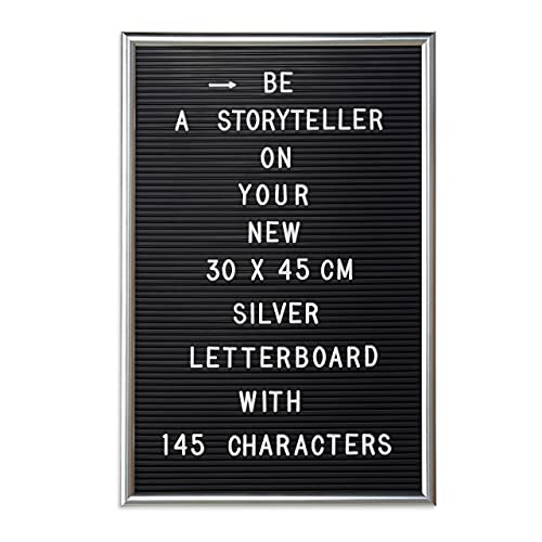 Relaxdays Tableau à lettres, 145 signes, chiffres, caractères spéciaux, 45x30 cm, panneau à rainures, plastique, argenté