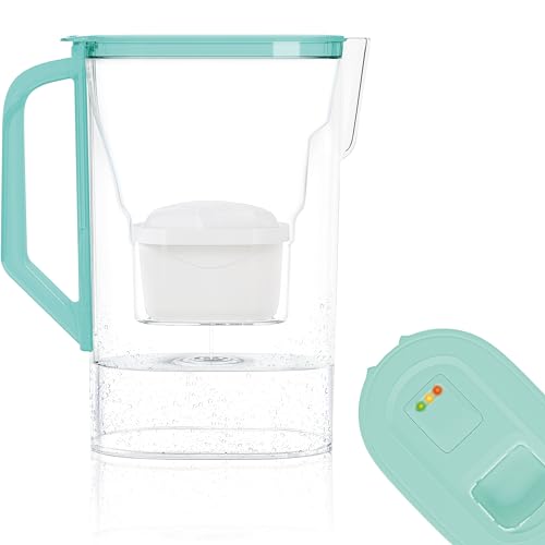 Wessper Carafe filtrante 2.7l, carafe eau filtrante avec compteur LED, carafes filtrantes porte de réfrigérateur, charbon filtre eau, carafe d'eau avec filtre, BPA FRE, Menthe