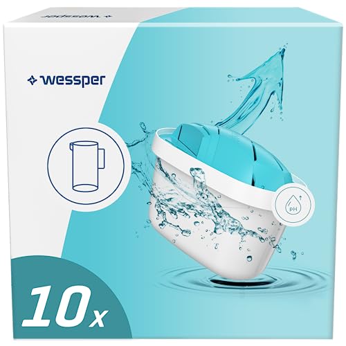 Wessper Cartouche Filtrante, Alcaline filtre eau pour carafe filtrante, pH élevé, améliore l'odeur et le goût de l'eau, Compatible avec les cartouches filtrantes BRITA, BWT (10 pièces)