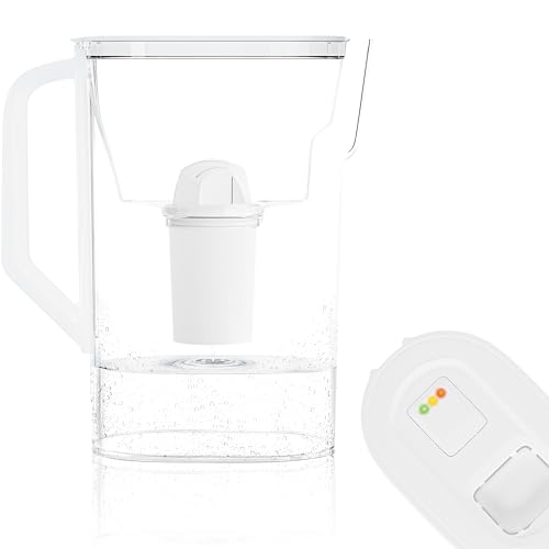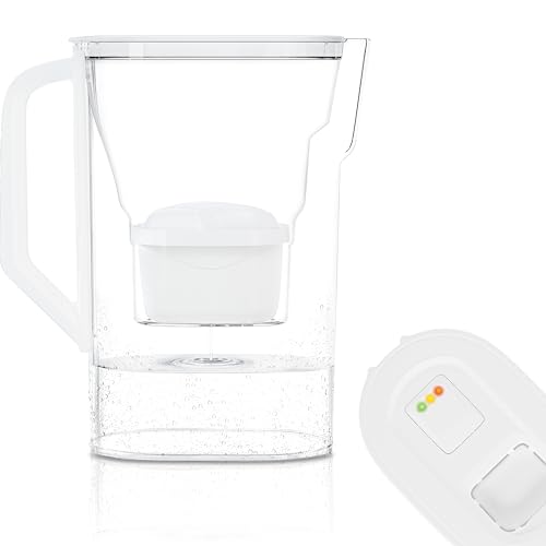 Wessper Carafe filtrante, Carafe eau filtrante avec indicateur LED, 3 l, Carafe avec cartouche filtrante, carafes filtrantes en verre, sans BPA "BPA FREE" – Blanc