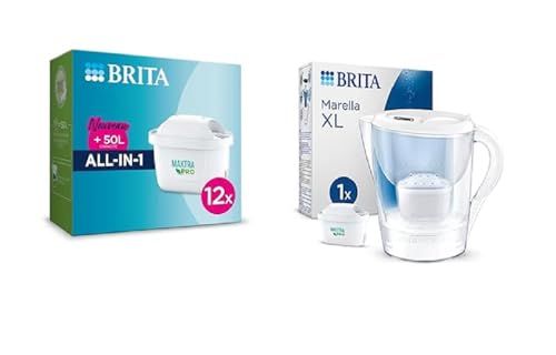 BRITA Pack de 12 cartouches filtrantes MAXTRA PRO All-in-1 & Carafe filtrante Marella XL blanche 3,5L + 1 cartouche filtrante MAXTRA PRO All-in-1