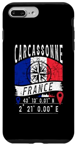 Carcassonne France Drapeau coordonnées GPS Carcassonne Coque pour iPhone 7 Plus/8 Plus