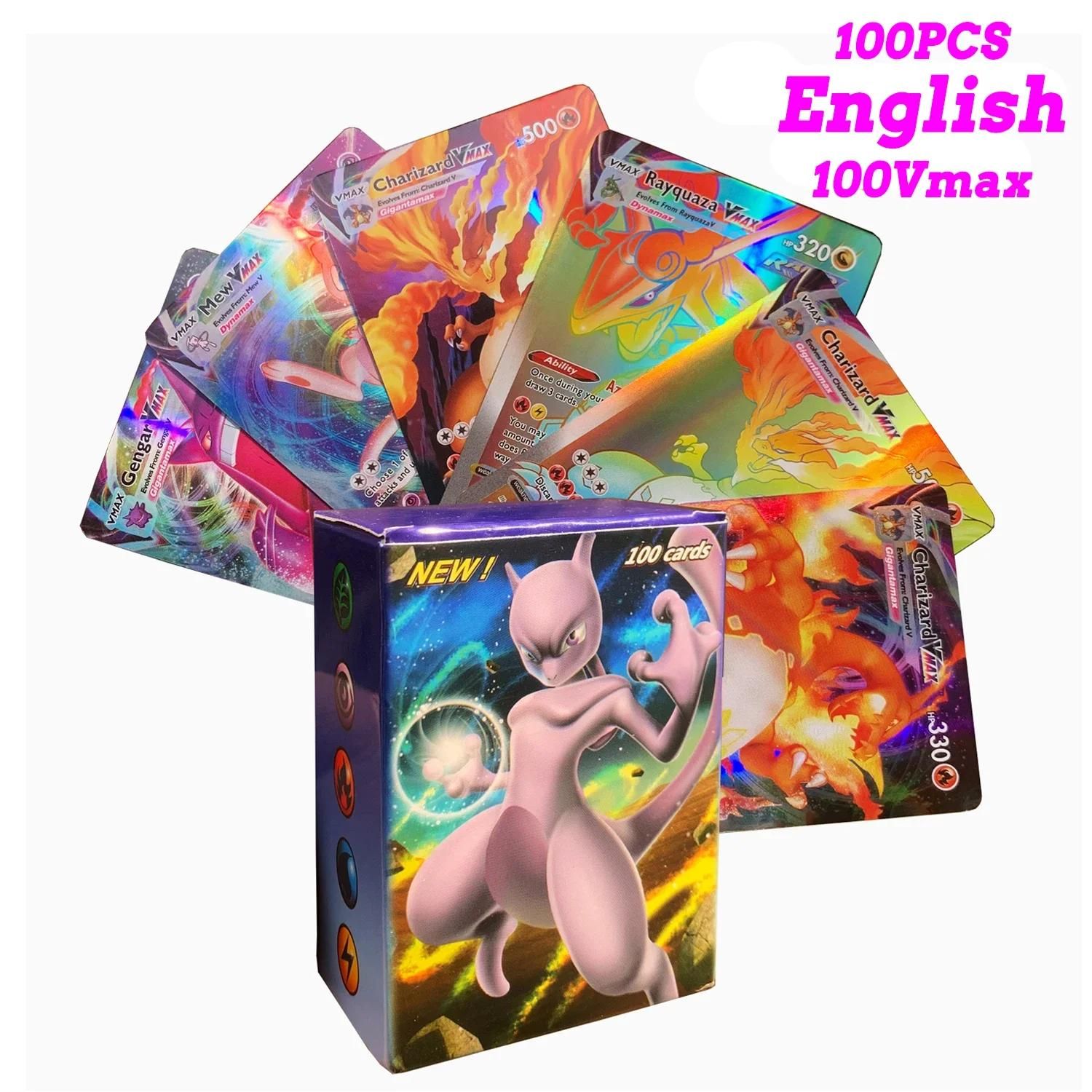 Kadel-20-100 Pièces Nouvelles Cartes Pokemon Anglais Français Espagnol Gx Mega Ex Tag Équipe Vstar Jeu Carte De Combat Offre Spéciale Carte De Collection Cadeau Pour Enfants,100pcs Vmax Card,