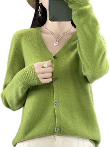 Cardigan en Cachemire pour Femme, Cardigan en Laine pour Femme, Tricot Chaud à Manches Longues Et Col en V, Boutonné, Doux, Idéal pour L'automne Et l'hiver., Green, L