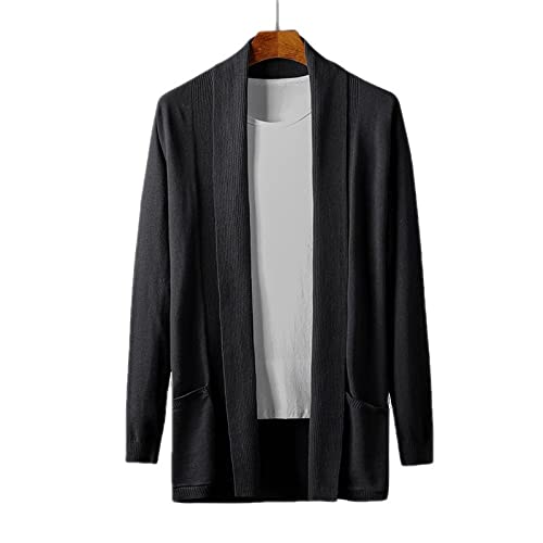 Cardigan Tricoté pour Hommes, Homme Entreprise Casual Tricoté Manteau Classique Mid Long Cardigan Pull Mode Pull À Manches Longues Automne Hiver Garder Au Chaud, Black, 4XL