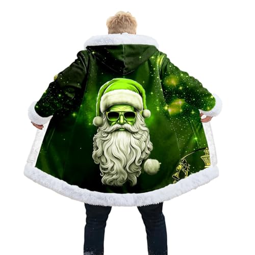 Veste de Noël pour homme - Long cardigan de Noël avec capuche - Motif de Noël - Manteau à capuche en polaire amusant - Imprimé Père Noël - Costume de Noël festif - Veste de transition - Veste longue