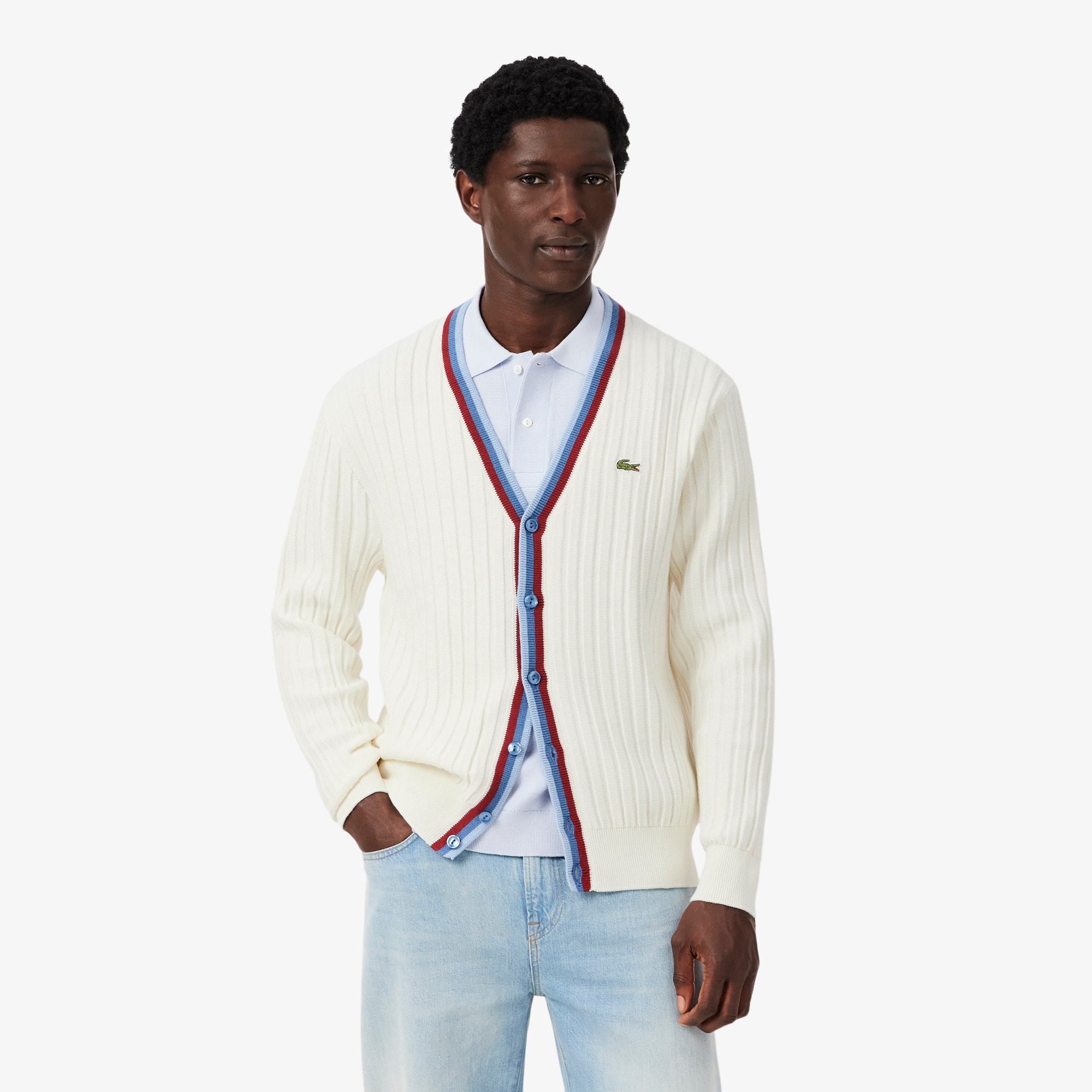 Lacoste Cardigan côtelé laine mérinos Taille 46 Blanc