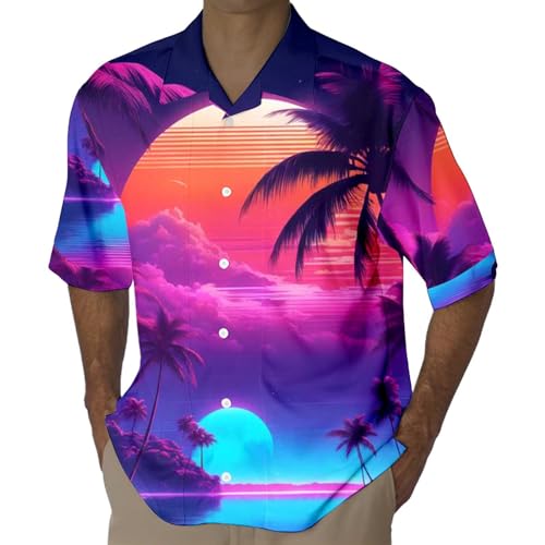 Chemise Manche Courte Homme,Chemise de Style décontracté à Manches Courtes pour Hommes Impression 3D Bord de mer Noix de Coucher de Soleil imprimé Cardigan à Manches Courtes Bouton Chemise à