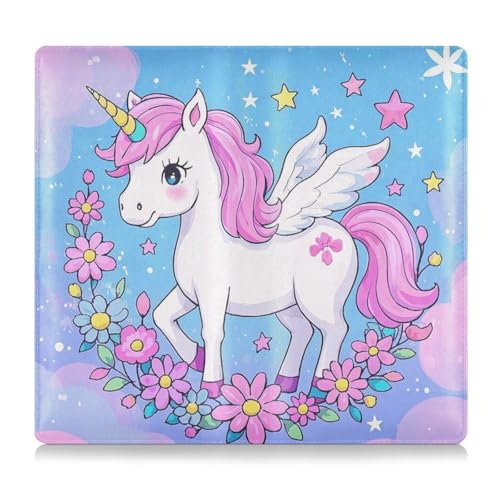 EtherSpher Cartoon Cute White Rainbow Licorns Premium Leather Assurance and Immatriculation Card Holder Vehicle Glove Box for Cards, Essential Document, Driver License Vehicle Paperwork