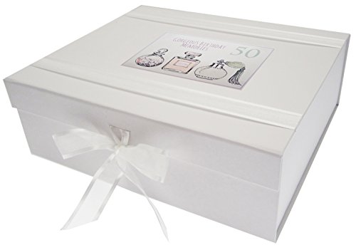 WHITE COTTON CARDS 50th Birthday, Large Keepsake Box, Perfume Bottles, Wood, 27.2 x 32 x 11 cm