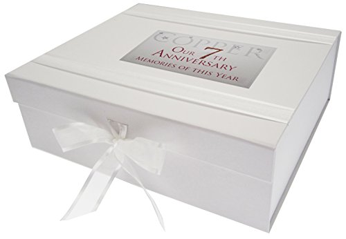 WHITE COTTON CARDS 7th Copper Anniversary Memories of This Year, Large Keepsake Box, Glitter & Words, Wood, 27.2x32x11 cm