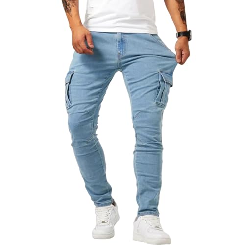 Jean Cargo URBANELITE, Jean URBANELITE, Jean Stretch Coupe Slim pour Homme, Pantalon Cargo en Denim à Poche à Rabat pour Homme (Bleu,M)