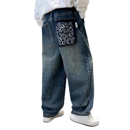 Bastwahl Baggy Jeans Pantalons Garçon avec Taille Élastique Jean Baggy Ado Garçon Pantalons Cargo en Denim Enfants Décontracté Large Hip Hop Y2K Streetwear Tailles 4 À 14 Ans