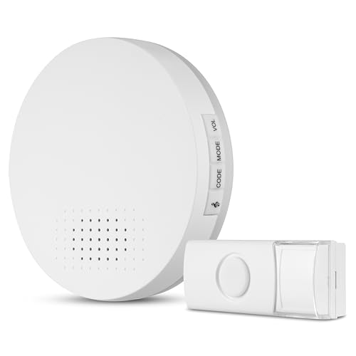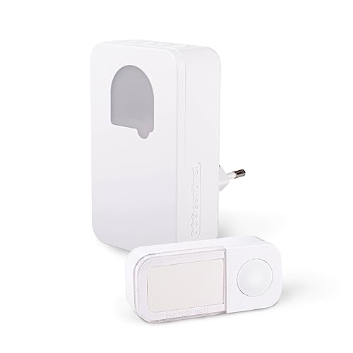 SCS Sentinel - Carillon sans Fil - Portée 200 m - 36 Mélodies au Choix - Indicateur Lumineux - Bouton Étanche IP44 - Fonctionne à Piles - Couleur Blanc Élégant