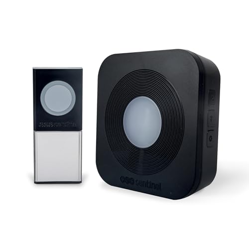 SCS Sentinel - Carillon sans Fil - Portée 200 m - 36 Mélodies - Bouton Étanche IP44 - Déjà Programmé - Indicateur Lumineux - Garantie 2 Ans - Couleur Noir Discret