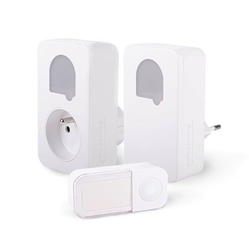 Avidsen Carillon Sans Fil Enfichable avec Bouton Sans Pile – Sonnette Sans Fil 100 m, 9 Sonneries, Volume Réglable, Carillon Secteur pour Maison