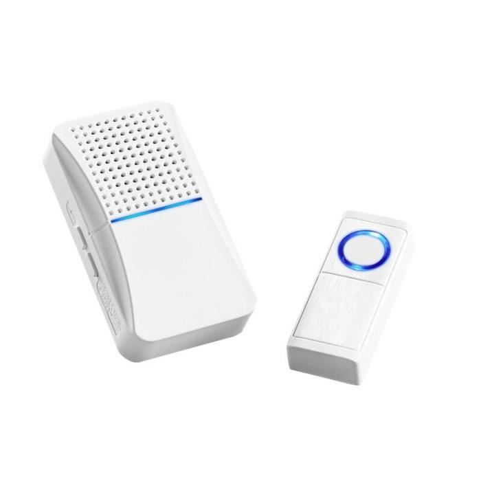 Getdoublerich Sonnette filaire Ding Dong sans fil pour la maison et le bureau - Carillon compact en plastique avec câble de 100 cm - Finition blanche - Fonctionne avec 2 piles AAA (non incluses)
