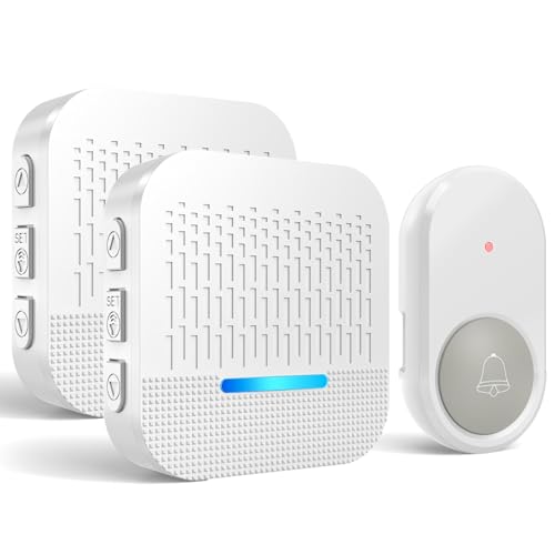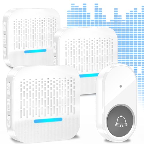 SURFOU Sonnette Sans Fil Exterieur Etanche Carillon Sonnette 300m Distance Émetteur Extérieur et 3 Récepteur Intérieur 55 Sonneries Incluant Noël 5 Volumes au LED Bleu, Blanc