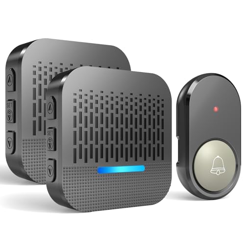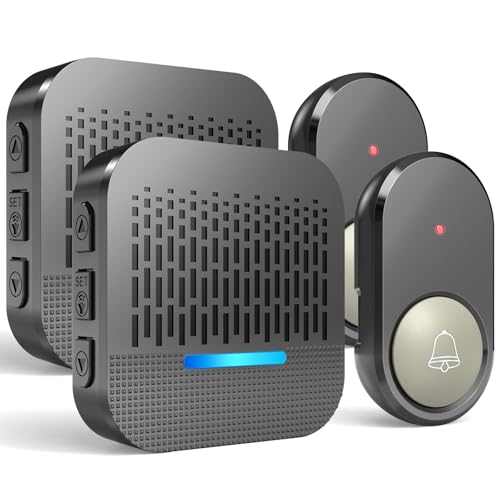 SURFOU Sonnette Sans Fil Exterieur Etanche Carillon Sonnette avec Batterie 300m Distance Émetteur Extérieur et 2 Récepteur Intérieur 55 Sonneries Incluant Noël 5 Volumes au LED Bleu, Noir